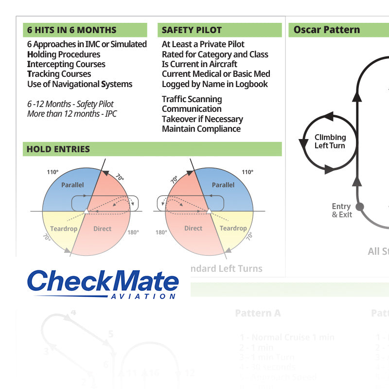 A modern IFR companion for learning, flying, and staying sharp, CheckMate® IFR 2 delivers essential instrument information in a clean, intuitive format designed for today’s training and cockpit environments. The front side is optimized for real-world IFR flight, while the reverse side supports practice, proficiency, and deeper understanding.